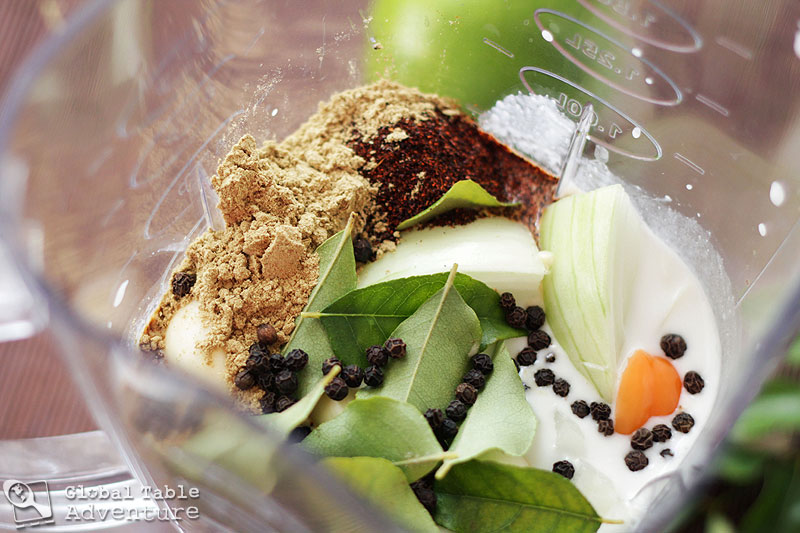 I whipped together the marinade in my brother’s blender. Typically, locals mix together a combination of hot chili peppers, spices, and aromatics. In a fit of inspiration, I added the coconut milk as most every recipe in Maldives contains some form of coconut.
