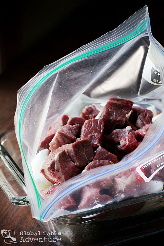 - 1 1/2 lbs sirloin steak , in 2" cubes