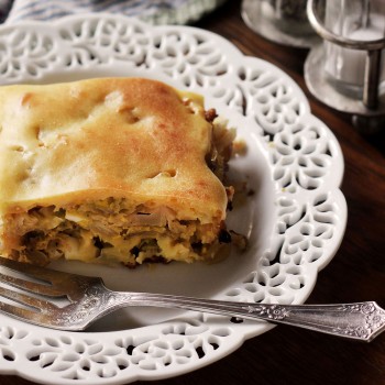 Russian Cabbage pie is a casserole worthy of any potluck. Take the time to wilt the cabbage down fully and season well for best results.