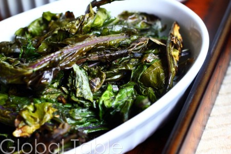 The vinegar gives the bitter greens an upbeat kick! You could even use fresh squeezed lemon juice, if you were in the mood 🙂