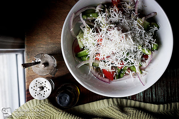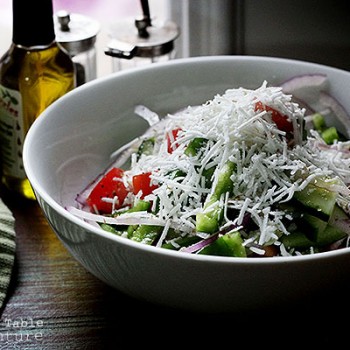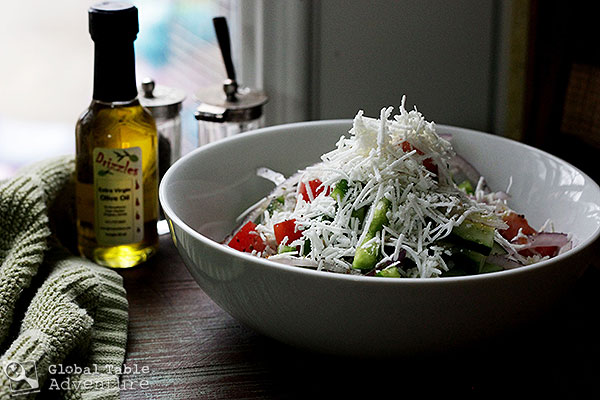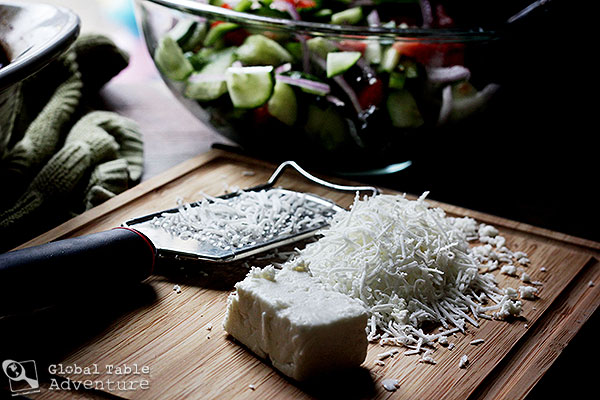 The key to a beautiful Serbian salad is simplicity – cucumbers, tomatoes, and peppers, topped with oil and vinegar… and especially cheese.