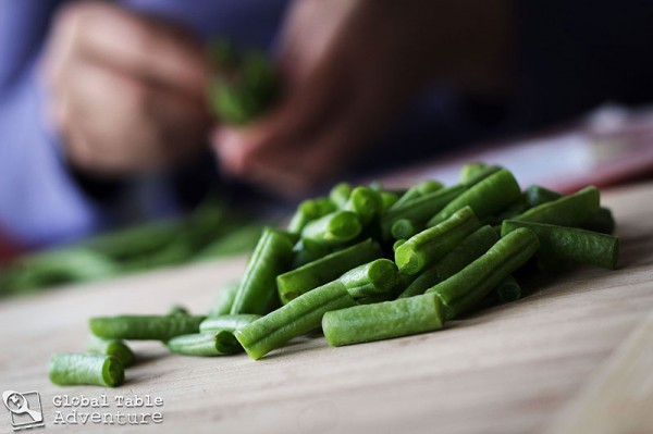 Meanwhile, chop up a mini mountain of green beans …