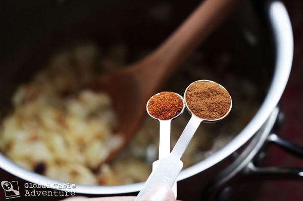 3. Add the spices, stirring and letting cook in the oil for a few seconds.