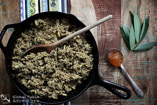 - You can just keep adding ingredients to the pan, frying and cooking and stirring until it’s a happy mess…or do what I did, and treat it like meatloaf. It’s a little unconventional (a.k.a. not traditional), but I tried it both ways and found the flavors got into the meat better with this method (and it makes the almonds a bit softer). It’s really easy: In a large bowl, mix beef, curry, lemon juice, zest, raisins, almonds, chutney, salt, pepper, and the soaked bread (squeeze it dry first and be sure to reserve the milk). You can add in the cooled onion mixture, too. Combine well.