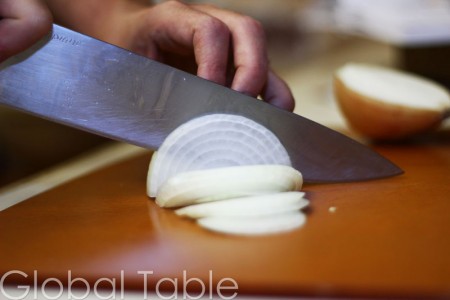 The thinner the onion, the quicker it will cook and become tender. Look how pretty – you can see the knife through the onion! 🙂