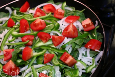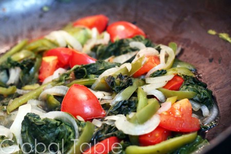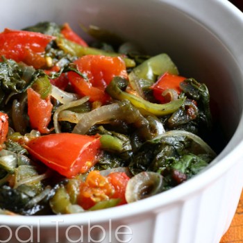 I love this easy, no-nonsense, super healthy side dish from Botswana. Simply steam spinach in its own juices until all the vegetables are soft. If you’d like to leave the tomatoes a little firmer, add them half way through cooking.