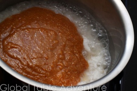 … pour peanut butter mixture over rice and stir in. Continue simmering until rice is perfectly tender.