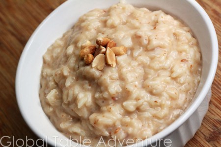If you’re looking for a sweet treat, but the pantry is rather dry, this African peanut butter rice might do the trick. The dish reminds me of peanut butter rice pudding – thick, sweet, and comforting.