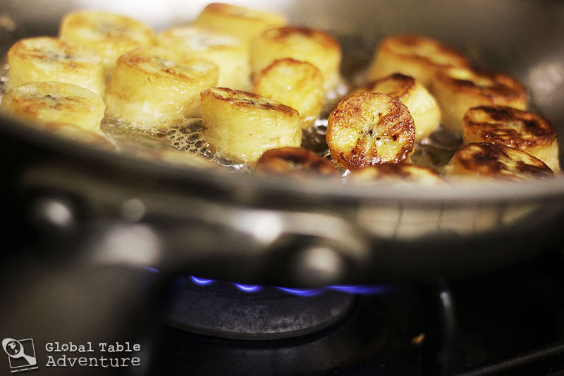 While the sweet potatoes are boiling, fry up the bananas until golden on each side. I go crazy for butter, but coconut oil would be totally authentic, too.