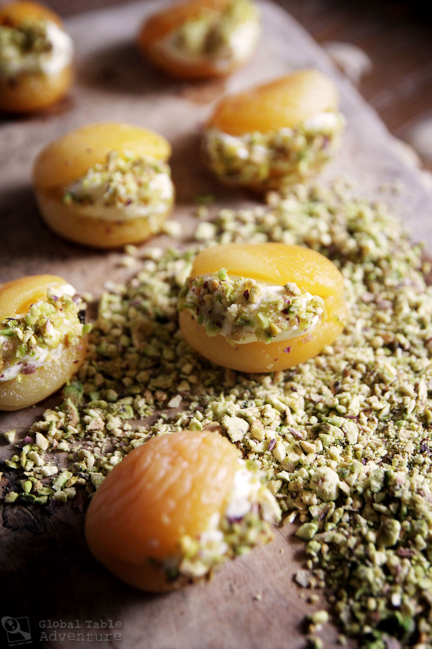 I thought it’d be fun to explore a recipe for stuffed apricots in honor of Cappadocia’s apricot groves. This traditional Turkish sweet (also known as Kaymakli Kayisi Tatlisi) uses just a handful of ingredients – apricot, lemon syrup, pistachios, and creamy cheese – making it a great appetizer for a dinner party or afternoon tea.