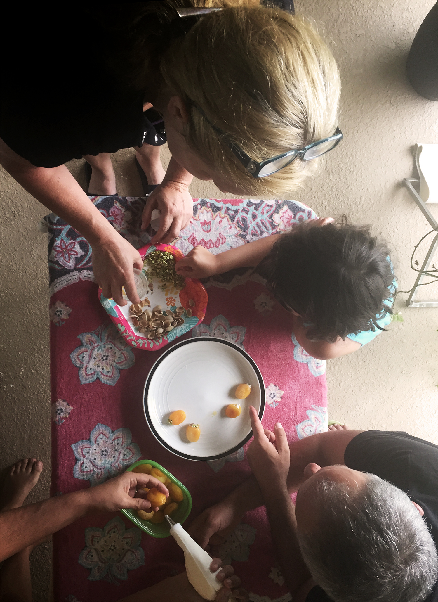 You can make Turkish stuffed apricots on a paper plate with a beach towel tablecloth. I know because we did! This summer Keith, Ava and I took a three-week road trip; we spent much of our time in Florida, with my brother, sister and her daughter and dad. With lots planned (the beach! Harry Potter at Universal! the pool! the planetarium!), we needed a recipe that would be easy to prepare.  Turkish stuffed apricots turned out to be a summer-proof solution.