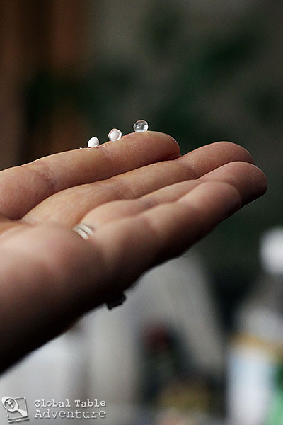 Next, up, the tapioca. Drop the dusty white pearls into a large pot of boiling water. Give several stirs and cook like pasta until completely transparent. My small pearls took almost 30 minutes, but times will vary depending on the size of your pearls and brand. Use lots of water – if you don’t, it’ll start to thicken like pudding.