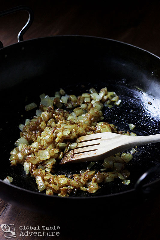 Heat up some vegetable oil into a large skillet or wok. Cook the onions over medium-high heat until softened, about five minutes. Add on the ginger, garlic, red chilies (if using), and curry powder. Reduce heat to medium and cook until fragrant and your house smells like a home.
