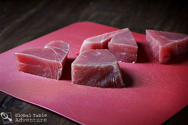 - 1 lb tuna steaks , raw, cubed