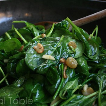 Wild mushrooms give this spinach salad Andorran appeal. The crunch of slivered almonds and the sweet of the golden raisins add another dimension.