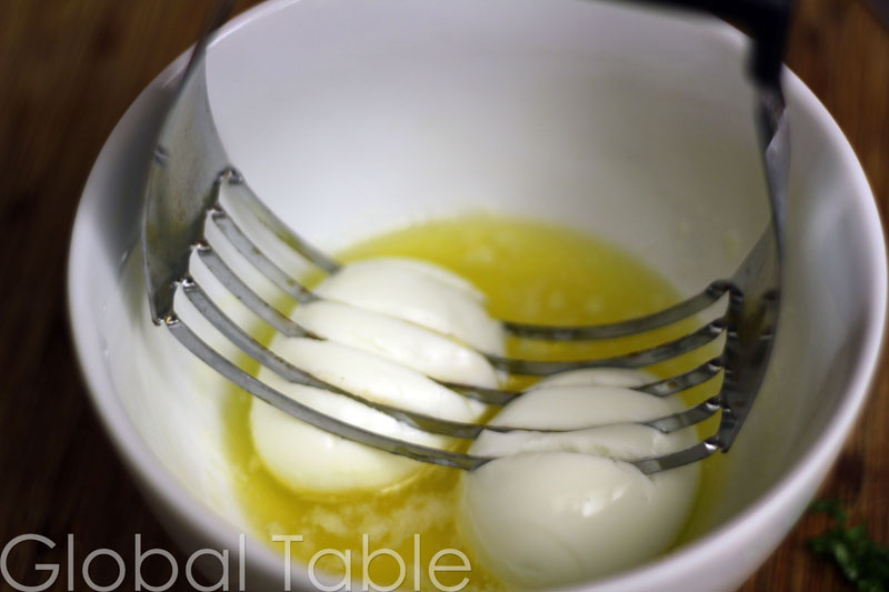 - In a small bowl, mash egg with butter. Combine remaining ingredients. Mix together to make sauce.