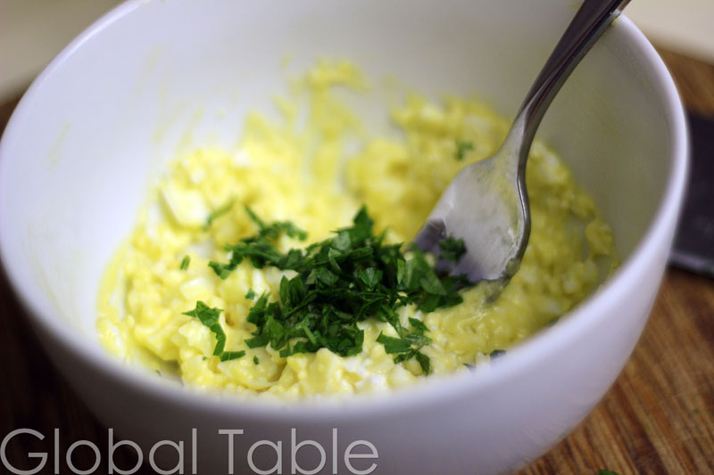 2. In a small bowl, mash egg with butter. Combine remaining ingredients. Mix together to make sauce.